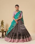 Embroidery pattern skirt paired with Rawsilk work blouse and hand work dhupata.