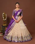 Chikkankari silk lehenga paired with Georgette embroidered dhupata and self weave blouse