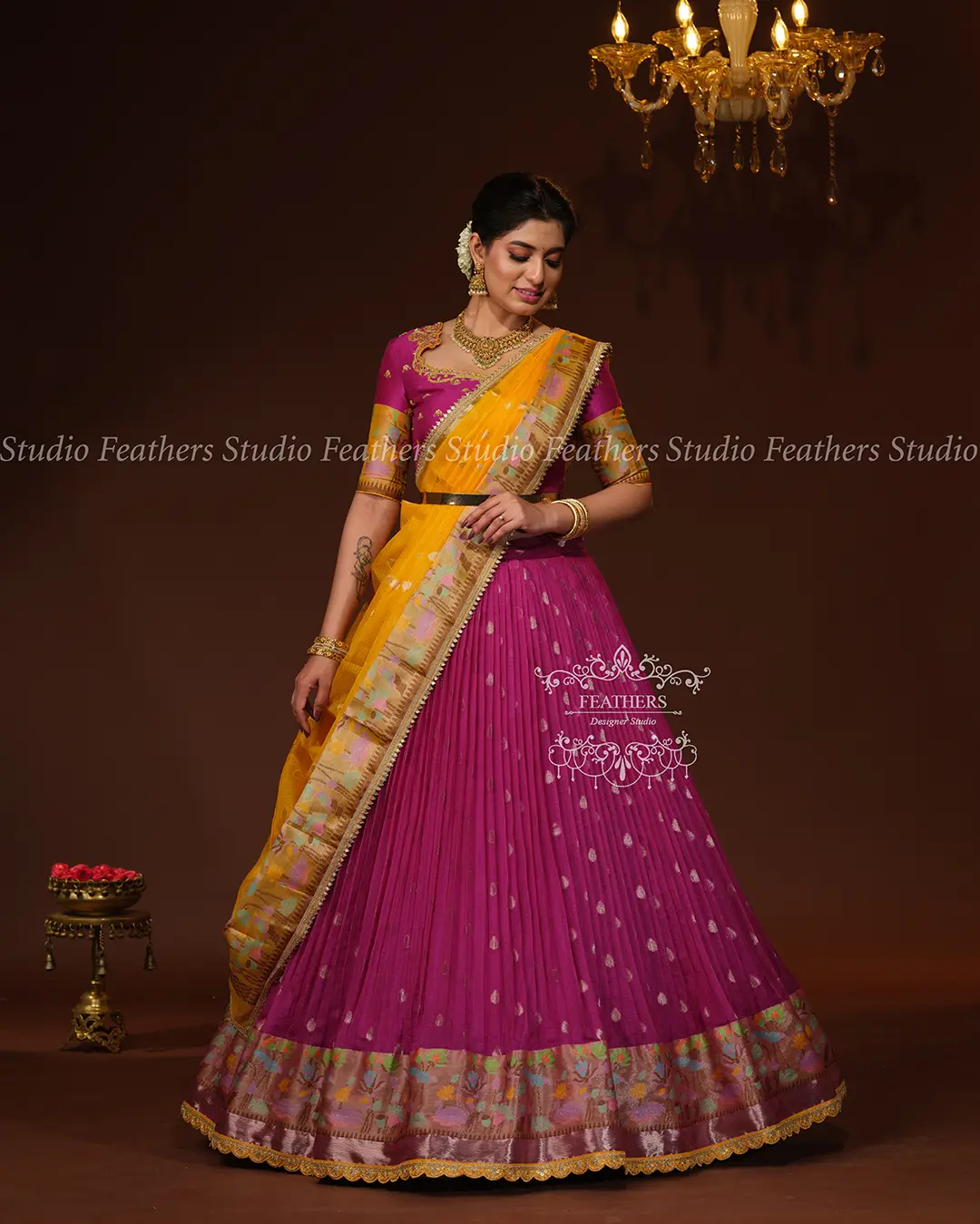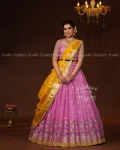 Embroidery pattern skirt paired with Rawsilk work blouse and hand work dhupata.